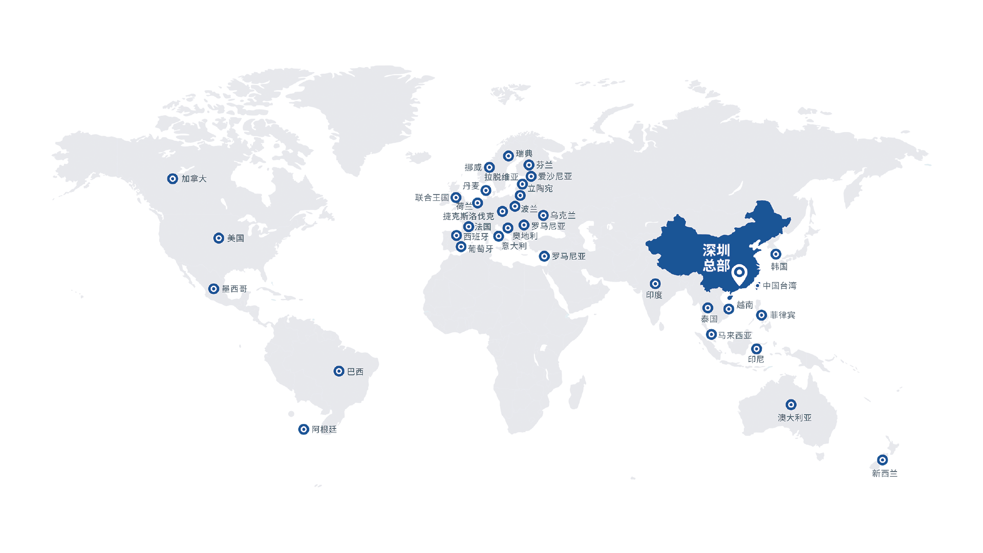 立足于國內(nèi)深圳、張家港、常州、天津、長(zhǎng)沙、蘇州、濟(jì)南生產(chǎn)基地與備品備件庫,國內(nèi)外轄180+辦事處,在100多個(gè)國家和地區(qū)設(shè)立銷售服務(wù)機(jī)構(gòu),為全球用戶提供高品質(zhì)的產(chǎn)品與優(yōu)質(zhì)高效的服務(wù)。
